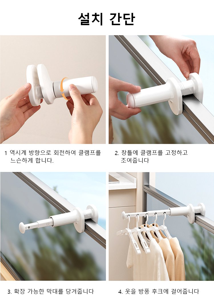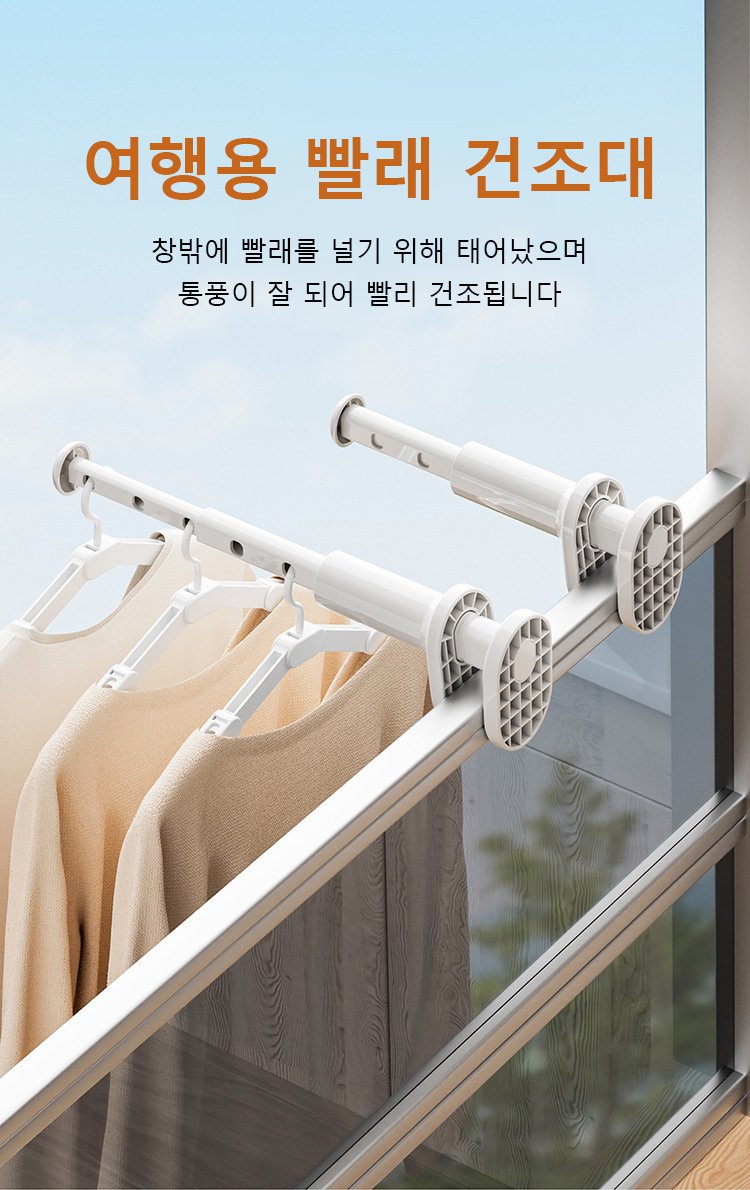 [최대 10KG 하중] 펀칭프리 신축식 휴대용 빨래건조대
